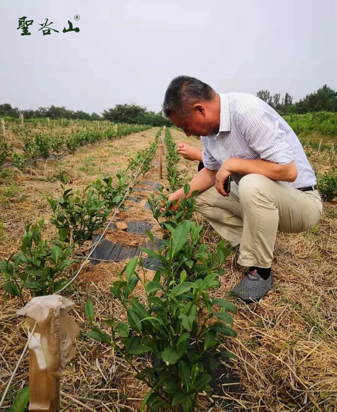 包小村查看圣谷山茶園茶葉幼苗生長(zhǎng)情況